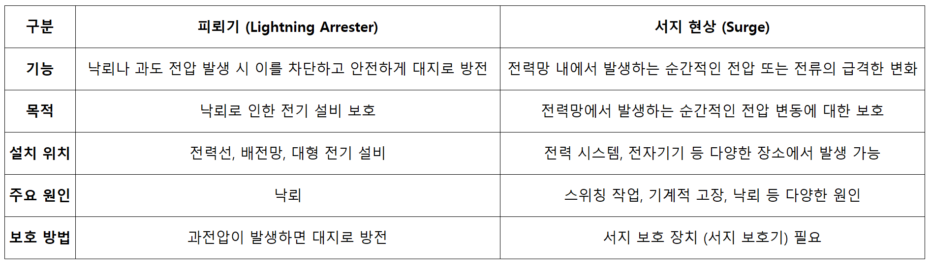 - 주로 낙뢰에 의한 전력망의 피해를 방지하고, 전기 설비와 장비를 안전하게 보호하는 것이 목적입니다.