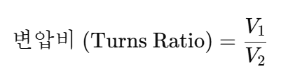 V1 : 1차 측 전압 (입력 전압), V2 : 2차측 전압 (출력 전압)