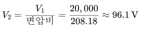 변압비는 일정하므로, 2차 전압은 다음과 같이 계산됩니다.