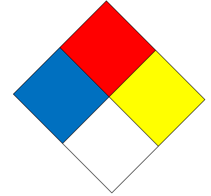 NFPA 지수는 다이아몬드 형태의 색상 코드와 숫자로 표시되며, 각 색상은 특정한 위험 요소를 의미합니다.