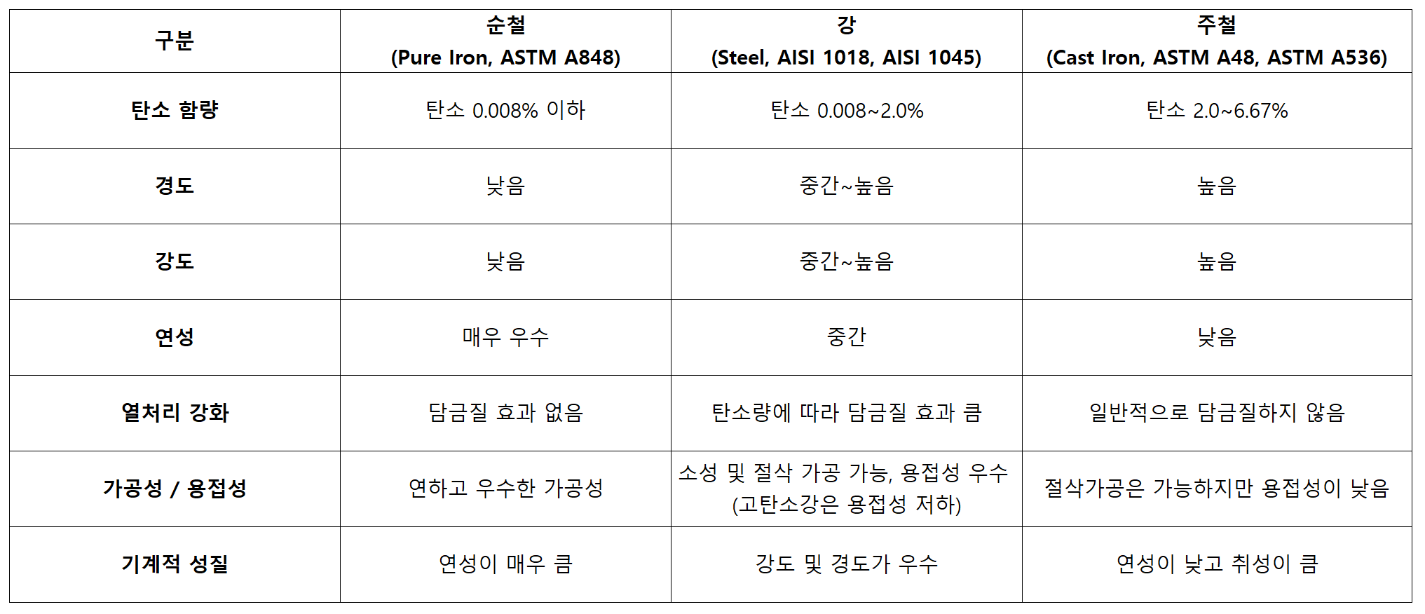 철강의 종류와 특성: 순철, 강, 주철 완벽 정리