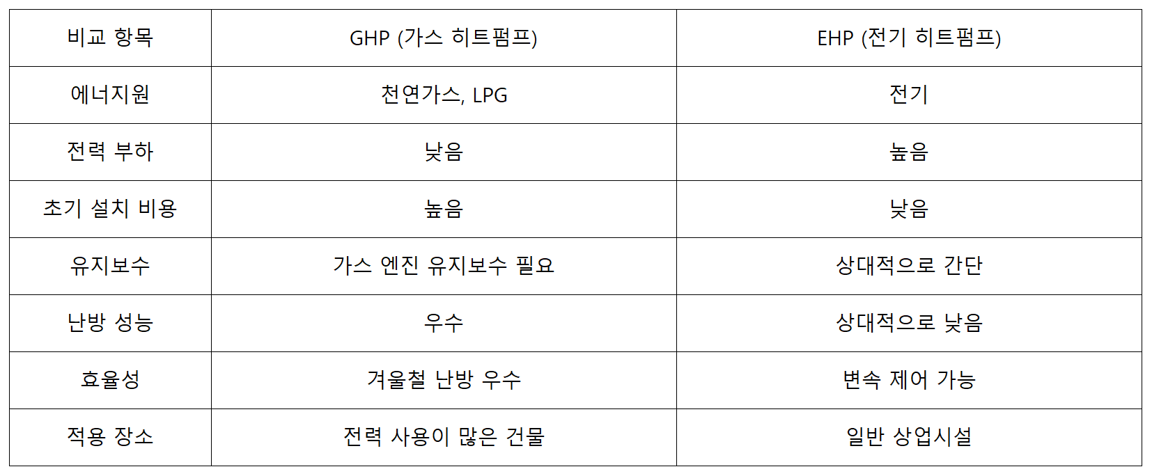 - 초기 투자 비용이 GHP보다 낮음