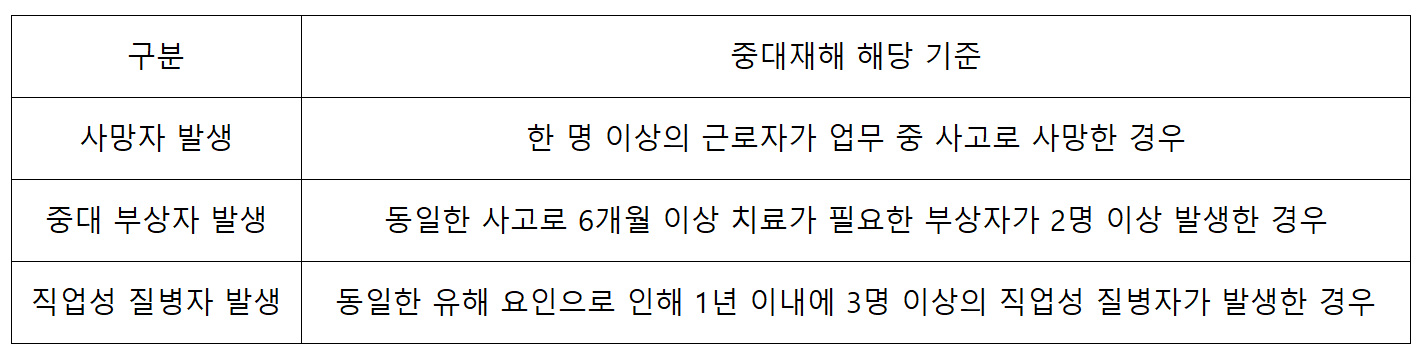 이번 글에서는 중대산업재해를 중심으로 설명하겠습니다.
