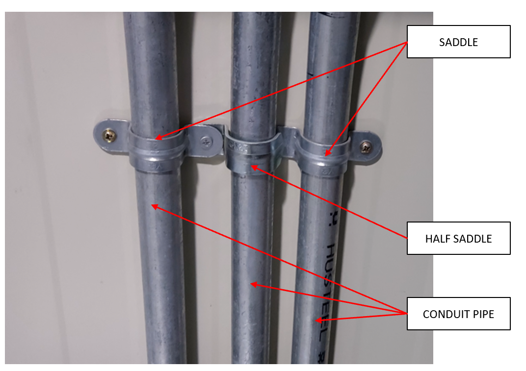 - SADDLE의 중앙에 CONDUIT PIPE를 두고 고정하고 싶은 벽면에 두고 SADDLE의 양쪽에