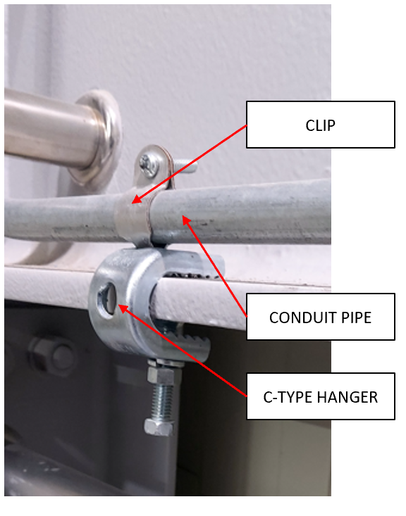 - H-Beam or L형 앵글에 C-Type Hanger를 고정시켜서 Conduit Piep를 흔들리지 않도록 합니다.