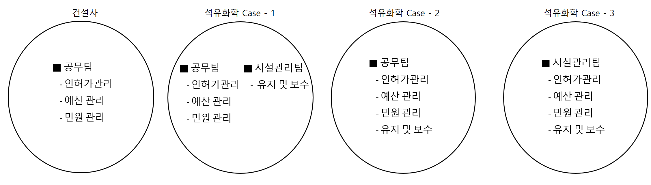 - 건설사 공무에서 했던 인허가,예산관리 등의 업무는 석유화학 시설관리팀에서 할 수도 있고