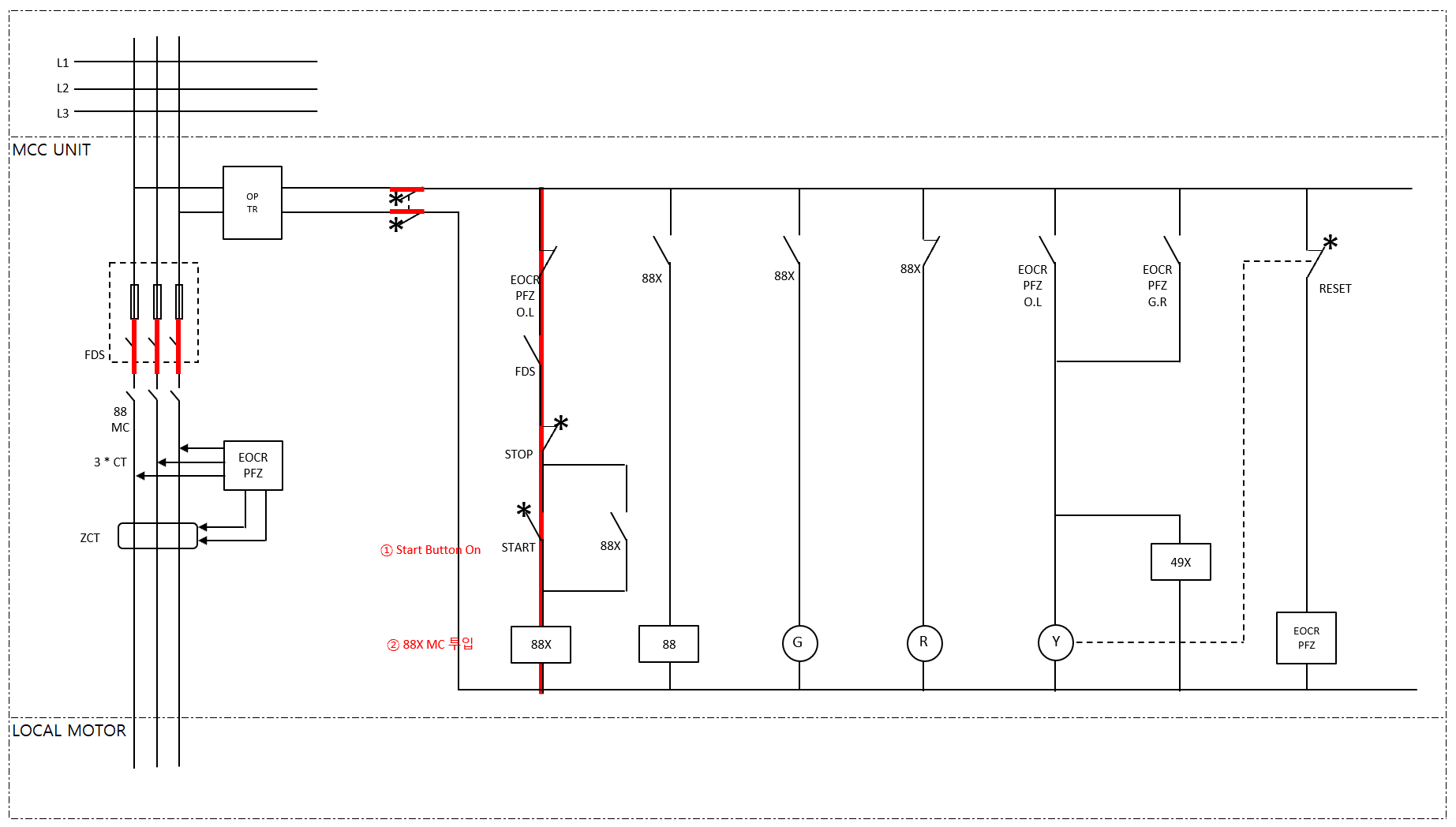 - ② 88X B접점은 88X 투입신호를 받고 Close → Open 됨