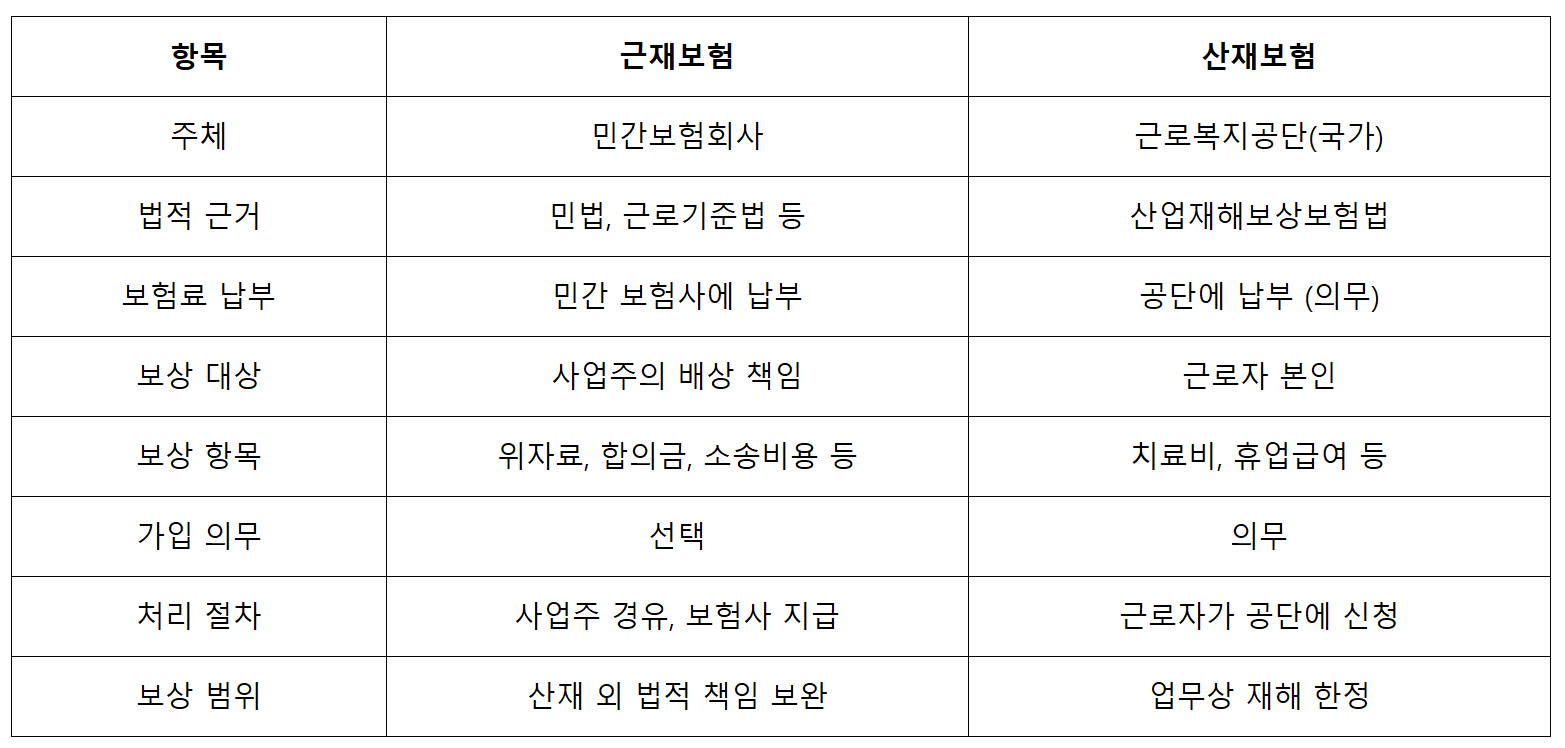- 보상 대상: 근로자 재해로 인해 발생하는 사업주의 법적 배상 책임