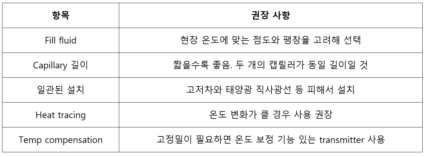 Level Transmitter의 오차 발생 시 Capillary Tube 길이 부터 검토