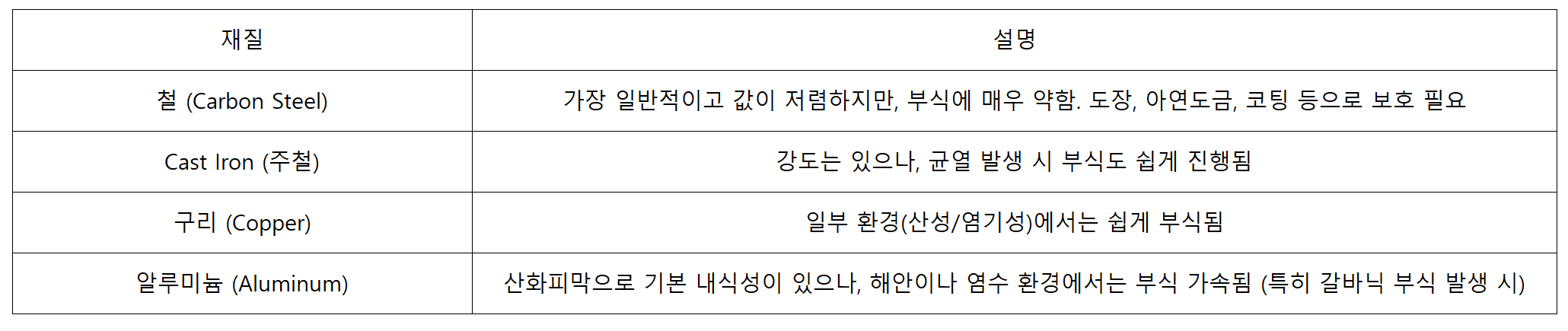 4. 부식에 약한 재질