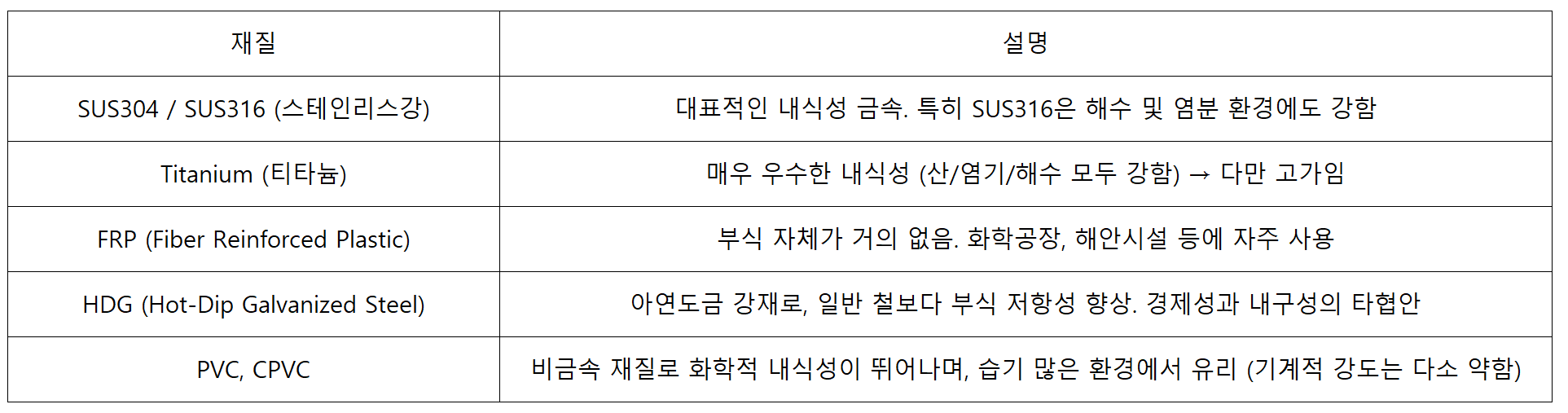 3. 부식에 강한 재질