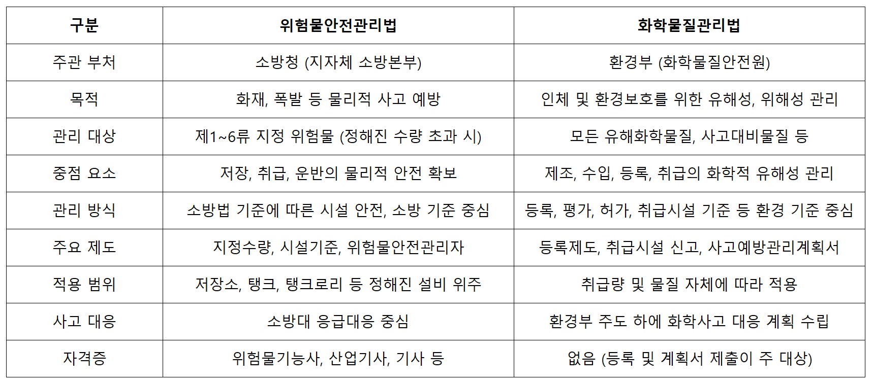 3. 위험물안전관리법과 화학물질관리법의 차이점