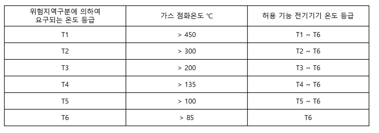Zone 0~2, Area IIA ~ IIC, T1~6 으로 지정이 되어야 합니다.