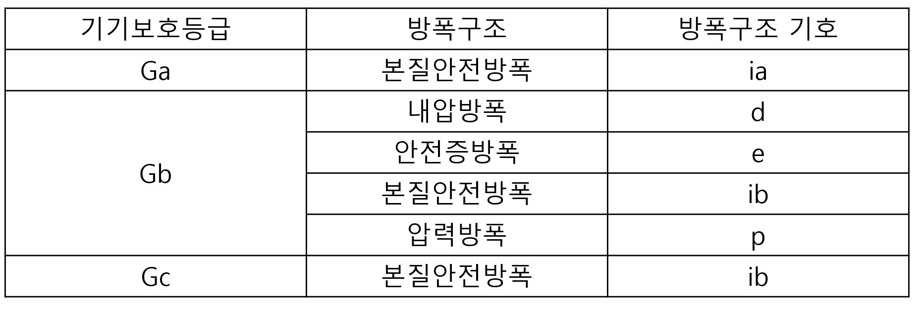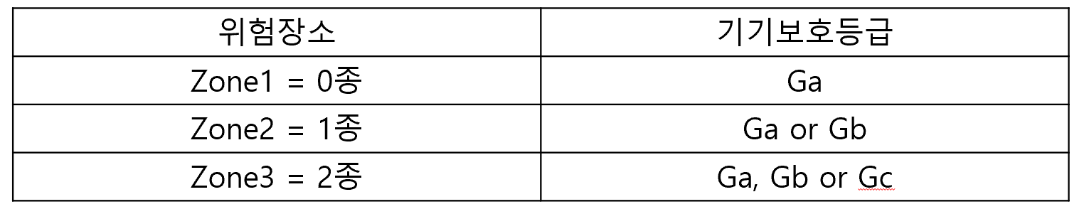 Ga~Gc는 아래 표를 보고 방폭을 선정할 수가 있습니다.