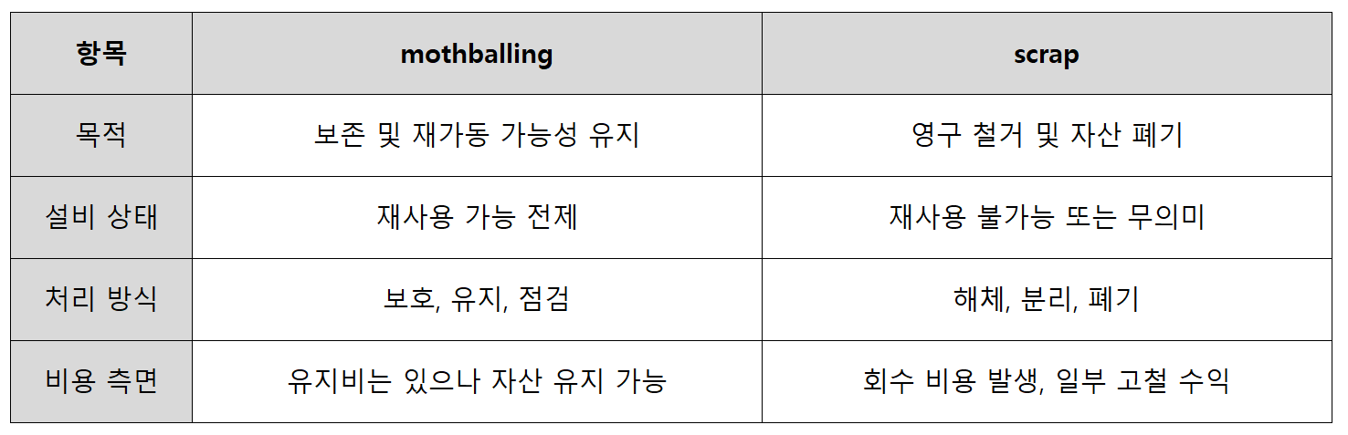 - Mothballing 이후 재가동이 불필요하다고 판단된 경우