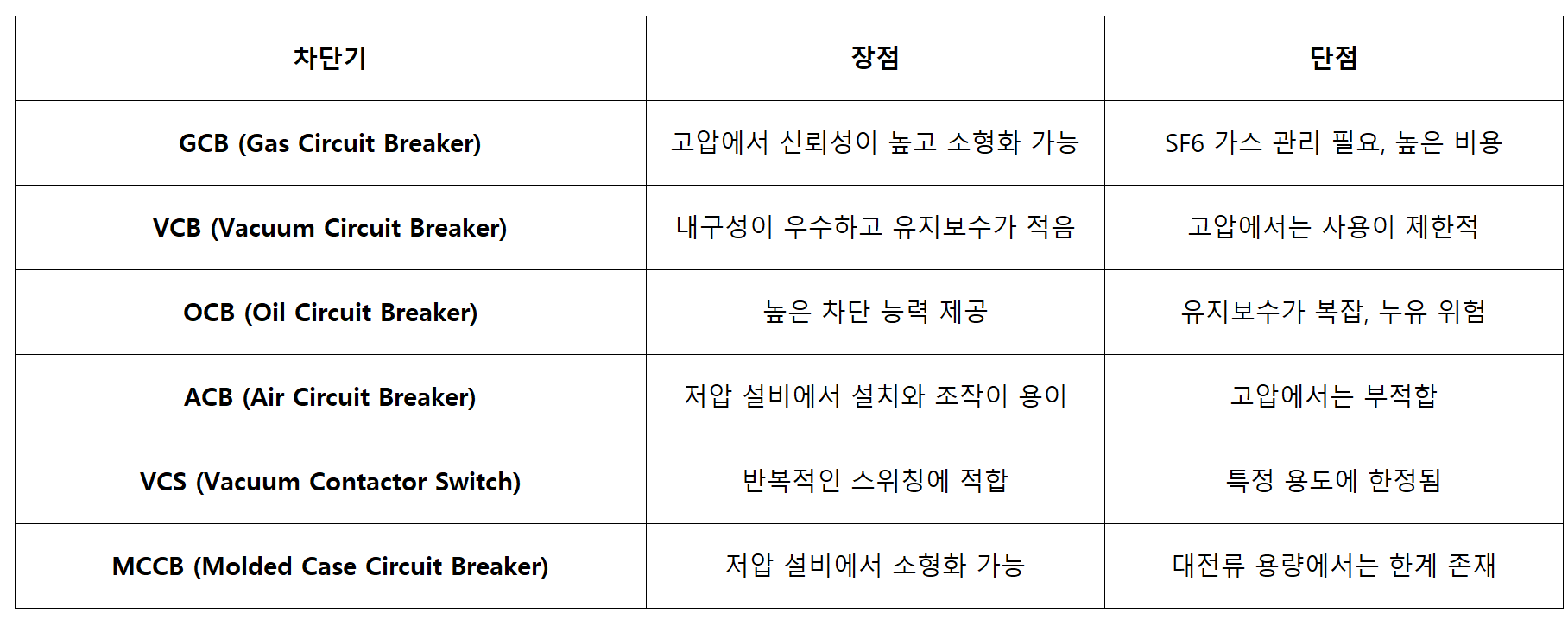 3. 차단기의 종류별 장점 및 단점